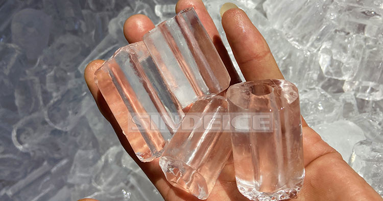 管冰是較規則的中空圓柱形,外直徑分為22、29、35mm、42mm四種規格,高度25-60mm不等,中間的內孔直徑可根據制冰的時間調整,一般直徑在5-15mm之間。冰塊質地堅硬、透明美觀,不易融化,透氣性好,儲存期長。形狀美觀,在餐飲食品冰鮮中,不但具備了實用性還兼顧了觀賞性。管冰多為可食用的管冰,主要用于飲品冷卻、食品保鮮、漁船水產保鮮、實驗室以及醫藥應用等。