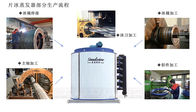 2.森德制冰通過(guò)精細(xì)的焊接加工和表面處理工藝,提高了蒸發(fā)器內(nèi)壁的熱傳導(dǎo)效率,而且通過(guò)特殊的加工工藝技術(shù)確保蒸發(fā)器的強(qiáng)度、硬度,使用壽命更長(zhǎng)。